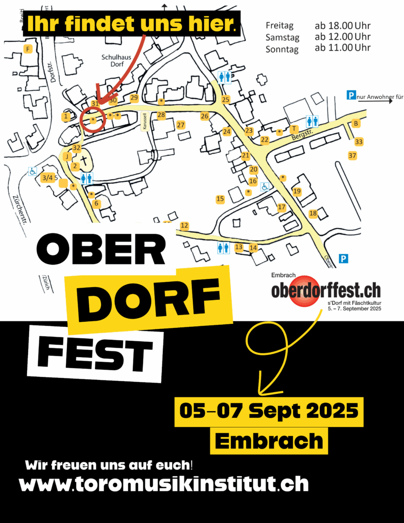 Vom 5. bis 7. September 2025 verwandelt sich Embrach wieder in ein Festdorf und wir vom Toro Musikinstitut sind mittendrin.