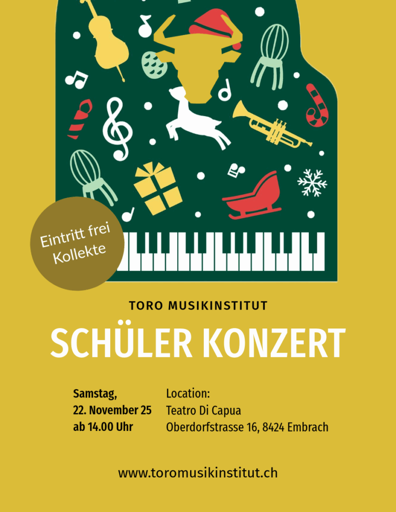Wir freuen uns sehr auf die musikalischen Auftritte unserer talentierten Schüler und Schülerinnen, die im Teatro Di Capua in Embrach ihr Können und ihre Leidenschaft zeigen werden.